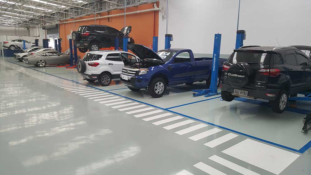O revestimento monolítico é o ideal para este segmento, agregando estética, facilidade de manutenção e limpeza com resistência química, mecânica e térmica, além da característica antiderrapante. Os monolíticos permitem personalizar e diferenciar os ambientes, ajudando assim na segurança do trabalho, revestindo desde o salão de vendas até as oficinas da sua loja.